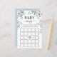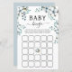 Aquarelle Fleurs de coton et vert eucalyptus. Dusty Blue Baby shower Bingo Jeu. Célébrez avec cette jolie collection