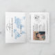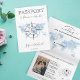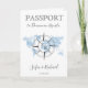 Carte du monde moderne et élégant Invitation Mariage Destination, comme passeport. Couleur bleu Dusty aquarelle monde carte et boussole monogramme crête sur la première page