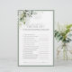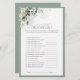 Jeu de douche nuptiale moderne et élégant "ce que le marié a dit" avec des feuilles botaniques gris luxuriants et des eucalyptus, et bordé d'un vert gris d'eucalyptus bleu pâle. Personnalisez vos questions en noir doux, accentué par une belle calligraphie à la main moderne. Partie d'une suite coordonnée. Voir la suite ici : https://www.zazzle.com/collections/elegant_eucalyptus_green_botanical_bridal_shower-119330045467288535 Contacter le concepteur pour les produits correspondants. Copyright Anastasia Surridge pour Invitations élégants, tous droits réservés.