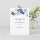 Elégante aquarelle florale bleu poussiéreux, blanc et marine mariage bouquet floral enregistrer la carte de date. La carte comporte un script "Save the Date", qui peut être changé en un type de police de votre choix qui est disponible ici lorsque vous cliquez sur le bouton "Personnaliser".