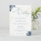 Invitation vos proches avec cette invitation de mariage romantique et élégante, avec des flores d'aquarelle bleu poussiéreux et des accents d'or subtils. Idéal pour les mariages rustiques, bohèmes ou de vignobles, ce design allie fantaisie et raffinement pour votre journée spéciale.