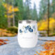 Customisez ce verre cadeau mariage pour la fête de mariage en cliquant sur le bouton "Personnaliser". Le Wine Tumbler présente une élégante et moderne fleurs bleues poussiéreuses, blanches, bleu clair et vert olive. CONSEIL : Idéal pour les fêtes surprise, les baby showers, les mariages et les retraites.