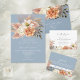 Ajoutez une touche botanique raffinée à votre courrier mariage avec cette étiquette d'adresse de retour bleu poussiéreux, qui comprend de la pêche à l'aquarelle, de l'ivoire et des fleurs rousses. Un détail de finition parfait pour les invitations ou les cartes de remerciement. Besoin d'aide pour customiser ? Rejoignez le site bpkolman@gmail.com.