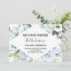 Dusty Blue and Eucalyptus Greenery Modern and Elegant Floral Watercolor Spring Nous avons Déménagé New Home ou New Address cards - comprend belle et élégante typographie script avec fleurs botaniques modernes et verdure pour la célébration spéciale New Home ou New Address.