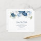 Elégante aquarelle florale bleu poussiéreux, blanc et marine mariage bouquet floral enregistrer la date avec la carte de code QR. La carte comporte un script "Save the Date", qui peut être changé en un type de police de votre choix qui est disponible ici lorsque vous cliquez sur le bouton "Personnaliser". Ajoutez votre site Web mariage et votre code QR au verso afin que vos invités puissent se tenir à jour avec vos plans