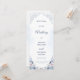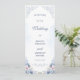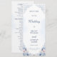 This elegant wedding program fan features soft dusty blue watercolor florals, delicate blush accents, and graceful vintage scrollwork for a timeless and romantic look. The front welcomes guests with a refined floral layout, while the reverse side provides space for ceremony details and wedding party information in a clear and polished format. Its airy blue palette suits classic, formal, garden, and traditional wedding celebrations beautifully. A lovely choice for couples who want coordinated ceremony stationery with a soft, sophisticated finish.