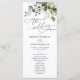 Conçu pour coordonner avec notre collection Boho Greenery mariage, ce programme de cérémonie personnalisable comprend des branches d'eucalyptus aquarelle avec une police serif classe et d'élégants graphiques de texte calligraphie. Éléments correspondants disponibles.