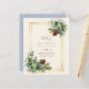 De beaux feuilles d'Eucalyptus et des cônes de pin d'hiver aux accents bleus poussiéreux sont présents sur cet automne, automne, articles de mariage d'hiver. Une partie d'une collection plus grande qui comprend des invitations à des mariages à prix réduit, des dates de remise, des RSVP, des remerciements aux cartes photos, des cadeaux de mariage et de mariage, et plus encore. Pour une planification de mariage d'hiver détaillée GRATUITE, consultez le guide weddingdesignchic.com.