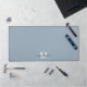 Nom initial personnalisé Monogram Dusty Blue Desk Mat. Ajoutez une touche personnelle et élégante à votre espace de travail avec ce tapis de bureau personnalisé, parfait comme un accessoire de bureau ou un tapis de souris surdimensionné. Le design est composé d'un arrière - plan bleu poussiéreux doux avec un nom de script blanc initial et noir placé au centre inférieur. Vous pouvez déplacer le monogramme n'importe où si vous souhaitez utiliser les outils de conception pour adapter votre disposition personnelle. Toutes les couleurs, y compris l'arrière - plan et les polices de caractères, peuvent être customisées selon votre style ou votre décor de bureau. Un cadeau soigné pour les anniversaires, la fête des mères ou toute occasion spéciale, ce tapis simple et élégant ajoute une touche polie et personnalisée à tout espace.