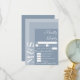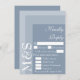 Simple carte de mariage chic RSVP avec choix de repas pour les mariées qui ornent leurs cérémonies en bleu poussiéreux moderne. La suite mariage chic a une police blanche moderne avec des initiales monogramme sur le côté.