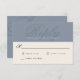 Design classique et élégant avec une pointe moderne, cette simple carte de réponse minimaliste mariage présente de beaux monogrammes de calligraphie de la mariée et du marié sur des coins alternatifs au dos de la carte. Personnalisez le modèle de texte avec votre date RSVP requise et les initiales monographiques de la mariée et du marié sur le côté arrière. Vous pouvez déplacer vos initiales légèrement à gauche ou à droite, vers le haut ou vers le bas afin de les adapter à leur meilleur affichage dans ce format de conception. Les monogrammes sont les meilleurs lorsqu'ils se détachent légèrement des bords. Montré ici en bleu poussiéreux et beige d'ivoire avec initiales de calligraphie sur le dos.