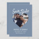 Dusty Blue Photo Modern Script Save the Date