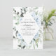Dusty Blue Floral Roses et Eucalyptus Botanical Greenery Aquarelle Printemps ou Eté Quinceañera Célébration Invitations - comprend une belle et élégante typographie script avec des fleurs botaniques modernes et la verdure pour la spéciale 15ème fête anniversaire.