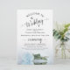 Ces programmes de mariage sont élégants et de bon goût, tout en étant toujours à l'aise avec le budget. Le design se compose d'un seul rose bleu clair ou bleu poudreux à long tige sur son côté, réfléchissant dans un bassin d'eau avec vagues et ondulations. La typographie présente une calligraphie en écriture noire dentée, et il y a de la place pour des détails sur la cérémonie, la fête de la mariée, et un bref merci.