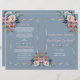 Design romantique et élégant avec délicate aquarelle bleu poussiéreux, bouquets de fleurs roses brumeux, splendide cloison fleurie, sur un arrière - plan bleu poussiéreux. Sur le dos, un bouquet de rose bleu brouillard poussiéreux. Utilisez l'outil Personnaliser pour ajouter vos informations. Pour les articles correspondants, s'il vous plaît, visitez ma collection de fleurs bleues dorées.