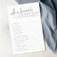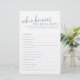 Ce jeu chic "Who Knows the Bride Best" est l'ajout parfait à vos festivités de douche nuptiale. Avec son look propre et contemporain et son format interactif amusant, il est sûr que les invités rient, bavardent et célèbrent la future mariée. Que votre douche ait une palette de couleurs bleu et blanc ou juste une ambiance moderne, ce jeu s'intègre parfaitement. De plus, c'est un excellent moyen de faire participer tout le monde et de s'assurer que la dame spéciale de l'heure se sent douchée d'amour (et de quelques surprises !).