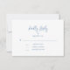 Cette botanique fleur sauvage RSVP bleu et blanc poussiéreux est moderne et simple. L'avant est minime avec la typographie de script. Le dos présente la même floraison délicate mais audacieuse présentée sur votre invitation.