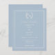 A dusty blue colored background decorated with a hand drawn crest, wreath. Soft ivory colored frames and text. Personalize and your monogram initials, names and details.