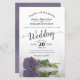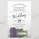 Ce magnifique budget ou faire-part de mariage abordable présente un design romantique avec un unique lilas à long tige, lavande ou rose pourpre poussiéreux posé sur son côté et réfléchissant dans un bassin d'eau. La typographie comprend une calligraphie de script dentée et une disposition sophistiquée. Le dos est d'une couleur violet ou violet marbré profond. Merveilleuse façon d'invitation vos amis et votre famille pour partager votre joie dans votre journée spéciale.