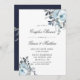 Le design présente une impression colorée avec des éléments floraux dans des tons bleu poussiéreux et bleu marine sur la verdure et les fleurs de pivoines. Idéal pour vos célébrations mariages !