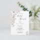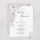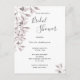 Une invitation branchée à la douche nuptiale en rose blanc et poussiéreux, rose. Un arrière - plan blanc chic à l'avant. Décoré de sprigs botaniques et de feuillage de couleur rose poussiéreux. Un grand script à main moderne, typographie avec le texte : Fête des mariées. Modèles pour que la mariée soit le nom et les détails du parti. Texte gris foncé. Dos : arrière - plan de couleur rose poussiéreux. Conseil : Si vous ne voulez pas qu'il ressemble à une carte postale, cliquez sur customiser, allez à l'arrière et retirez le séparateur et le timbre postal.