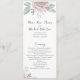 Un long mariage à porte mince commande de service modèle de cérémonie de service. Ce design comprend une cérémonie mariage rose, avec une belle floraison rose de verdure botanique bleu, et un ordre de service simple floral, fleurs botaniques minimalistes, typographie de script de calligraphie minimale, police de script de calligraphie moderne, cérémonie d'église traditionnelle formelle, script de texte minimaliste, feuillage long porte-à-faux, programme photo simple double face, élégant aquarelle simple programme de mariage modèle