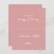 Une simple carte de mariage de rose poussiéreux (rose) avec le nom du client et le numéro de table imprimé sur son devant, les noms de mariée et de mariée et la date du mariage imprimée sur l'autre côté (c'est l'autre moitié, avant de le plier). Tout le texte est un script calligraphique blanc. Taille : 4,5 po x 5,6 po avant pliage, soit 4,5 po x 2,8 po après pliage.