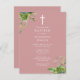 Dusty Rose verdure Monogramme Baptême Invitation