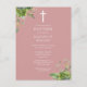 Cette élégante carte postale d'invitation à baptême rose rose, vert eucalyptus et poussiéreuse peut être personnalisée avec vos informations dans la typographie chic avec des initiales monogrammes au verso. Conçu par Thisisnotme©