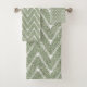 Ce motif en chevron vert sauge velouté suggère l'effet nappy du toweling en éponge ou velours. Il a un aspect tridimensionnel brun avec une texture nubby et des rayures ajoutant une sensation luxueuse de texture et de profondeur.