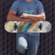 Bold sweeps of blue, orange, yellow, and white streak across earthy neutrals like a painter’s wildest dream frozen in motion. This deck channels raw artistic energy, as if it were pulled straight from a modern canvas and dropped onto the streets. It’s the perfect ride for creatives who crave movement, texture, and a touch of chaos in every push.