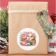 Round sticker is shown with a cute Easter bunny art print.