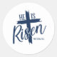 Sticker is shown in an Easter He Is Risen print.