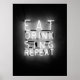 Cette affiche en noir et blanc présente un signe néon brillant avec les mots Eat Drink Sing Repeat, créant une déclaration audacieuse et moderne pour n'importe quel espace. Idéal pour les amateurs de musique, les salles de fêtes, les bars à la maison ou la décoration de salon, ce design saisissant ajoute une touche d'énergie nocturne à vos murs. Imprimé avec des détails de haute qualité, il constitue une idée cadeau unique pour les amis qui aiment les réunions amusantes, les célébrations et les intérieurs élégants. Une oeuvre d'art polyvalente qui allie design contemporain et message animé, ce qui en fait un complément attirant à toute maison moderne ou espace créatif.