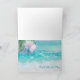 Carte de Remerciement | Thème de Mariage de Plage. Belles eaux de mer étoilées scintillant au soleil, écume d'eau blanche sur la plage de sable propre avec une fronde de palmier et une fleur rose clair ornent le coin. Formel ou décontracté, pour un mariage de plage ou un mariage d'île de destination - Cela fait partie d'une suite de mariage complète avec de la papeterie de mariage gratuite trouvée chez The Barefoot Bride http://zazzle.com/TheBarefootBride