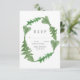 Whimsical et charmant Verdure Aquarelle Mariage mariage RSVP carte avec une aquarelle peinte bordure de feuilles verts vibrants dans une variété de formes et de tailles. Cette carte de réponse simple et tendance est facile à customiser avec les détails de votre mariage. Pour plus d'options de personnalisation, cliquez sur Personnaliser.