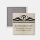 Élégant et chic Elegant Deco Save the Date Magnet avec une paire de bordures de tourbillon art déco fleurissent en ébène et un look vintage texturé arrière - plan dans un beige doux. Cela économise l'aimant de date a un charme rustique tout en conservant une agréable atmosphère sophistiquée. Parfait pour un mariage à thème vintage art déco des années 1920. Facile à customiser, il suffit d'ajouter les détails de votre mariage dans les champs de texte fournis. Cliquez sur "Customiser" pour trouver d'autres options de personnalisation comme changer de polices ou de couleurs de texte.