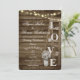Echelle en bois vintage avec lettres AMOUR et bocal de conserverie plein de souffle bébé décorent cette suite rustique de faire-part de mariage. Les lampes à cordes scintillantes Sparkley ajoutent un charme supplémentaire à l'arrière - plan en bois de grange foncé.