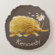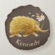 Aquarelle art whimsical animal rond coussin coussin. Idéal pour une chambre fantaisie à thème animal ou une chambre d'enfant. Une excellente idée cadeau pour un cadeau baby shower. Comme les hérissons et les porcs-épics, ces échidnas super mignons sont uniques à l'Australie. Il est fréquent de les voir se balader sur la route, mais peut-être pas normalement avec une fleur... Personnalisé avec votre propre nom lit actuellement Kennedy. Uniquement peint en aquarelle et conçu par Sarah Trett www.sarahtrett.com pour www.mylittleeden.com sur zazzle.