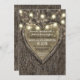 String Lights + Oak Tree Bark Wedding Invitations - dispose d'un coeur sculpté, des lumières à cordes et de minuscules lumières scintillantes éparpillées au sommet. L'arrière - plan dispose d'un arrière - plan d'écorce d'arbre.