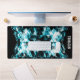 Personnalisez avec votre nom. Flammes triangulaires bleues étincelantes électrifiantes. Maille géométrique Triangle bleu, noir et blanc avec fumée abstraite et tirage étincelant.