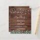 Invitations amis et famille à votre mariage avec ces élégants et rustiques bois avec des lampes à cordes et des cartes de faire-part de mariage de verdure eucalyptus. Ces invitations uniques au mariage campagnard rustique comprennent d'élégantes lampes à cordes blanches sur du bois de grange avec un design botanique de verdure. Personnalisez ces invitations de mariage rustiques avec les noms, la date du mariage et l'emplacement. Découvrez notre collection mariage pour des invitations uniques à des mariages, des albums photos mariages, des livres d'invités, des cadeaux de fête, et plus encore ! DROIT D'AUTEUR © 2020 Judy Burrows, Black Dog Art - Tous droits réservés. Éclairage de chaîne rustique budget Eucalyptus Mariage Inv
