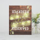 Épais 110 livres Papier pliable panneau réservé - mariage campagnard rustique en bois mason chaîne de lampes branche arbre avec feuilles verts pliant signe réservé. Le cordon lumineux illumine les feuilles verts contre un beau bois rustique brun foncé. Ce design mariage rustique est personnalisable et parfait pour votre beau mariage campagnard extérieur ou mariage occidental. Vous pouvez personnaliser en modifiant le texte et en ajoutant des images si vous le souhaitez. Vous pouvez également choisir un type et une épaisseur de papier différents. Pour les articles correspondants, veuillez consulter la collection ci-dessous avec d'autres articles dans la suite mariage rustique.