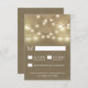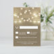 String Lights + Rustic Burlap Wedding RSVP Cards - dispose d'un arrière - plan imprimé burlap avec un design de lumière à cordes en haut.