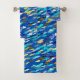 Serviette sertie dans une école de poissons dans un océan bleu profond - tons bleu, turquoise, or et blanc
