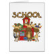 T-shirts mignon et coloré de conception de girafe d'école, sweatshirts, sweat - shirts à capuche, mus, cartes, autocollants, sacs fourre-tout, et plus de trois girafes comportantes avec des fournitures scolaires et des déjeuners, une maison rouge d'école, et texte de style de girafe.