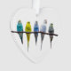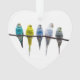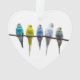 Row of budgie birds on a tree branch
