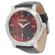 Élégante montre à bracelet en cuir, avec le classique clan rouge, noir et blanc Cunningham tartan plaid motif, sur le visage, avec des nombres blancs et des points pour les heures. Cunningham peut être personnalisé pour lire ce que vous voulez.