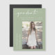 Yay ! Elle a finalement obtenu son diplôme d'études secondaires, collégiales ou universitaires, ou un programme d'études supérieures. Il est donc temps d'informer sa famille et ses amis qu'elle l'a fait ! Célébrez l'un des moments précieux de sa vie et envoyez cette carte magnétique faire-part de graduation. Cet aimant présente un magnifique script calligraphique de la formulation de "diplômé" sur un arrière - plan vert poussiéreux et la photo du diplômé. Il suffit de customiser et de remplacer le texte et la photo dans la zone de personnalisation. Remarque : le libellé élégant du script de calligraphie de "diplômé" et d'autres illustrations graphiques et éléments ne peuvent pas être modifiés, supprimés ou déplacés. Elles sont réparées.