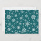 Envoyez vos vœux de fêtes avec ces cartes photo chic avec votre nom de famille superposé en lettrage manuscrit blanc. Personnalisez avec votre message de Noël ou de fêtes personnalisé en dessous. Les cartes reprennent un motif de flocons de neige blancs sur un fond vert sapin de Noël festif.